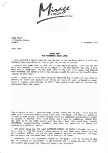 This flyer demonstrates the year of 1993, and that no cheques will be cashed until the game is shipped. This was the initial attempt to pre-sell the product to raise production funding from customers directly.